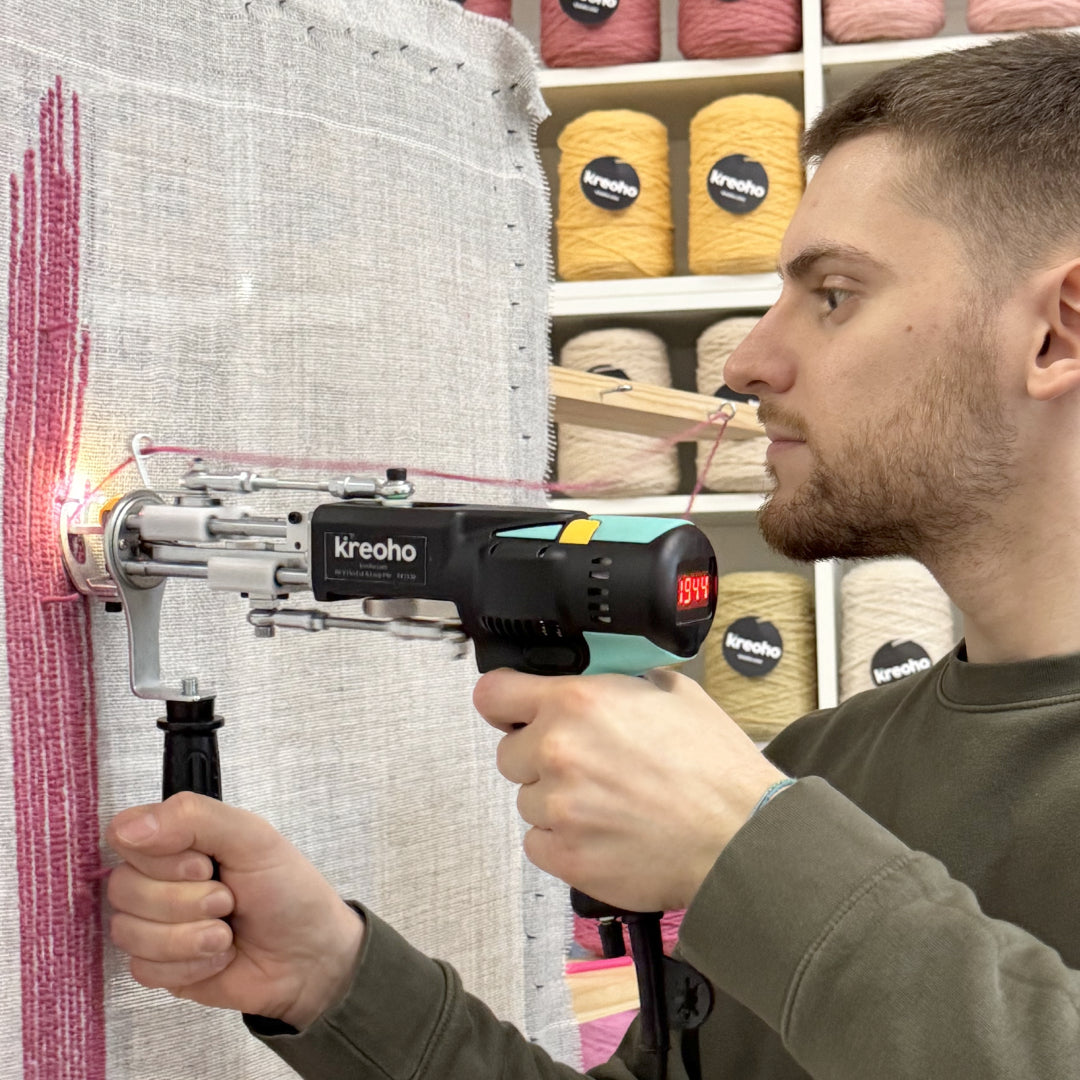 Tufting Machine AK V PRO Cut & Loop Pile Kreoho® est une machine professionnelle de nouvelle génération, conçue pour garantir une précision maximale, une grande fluidité et un niveau sonore réduit. Parfaite pour les professionnels comme pour les passionnés de tufting, elle rend la création de tapis plus simple, intuitive et confortable.